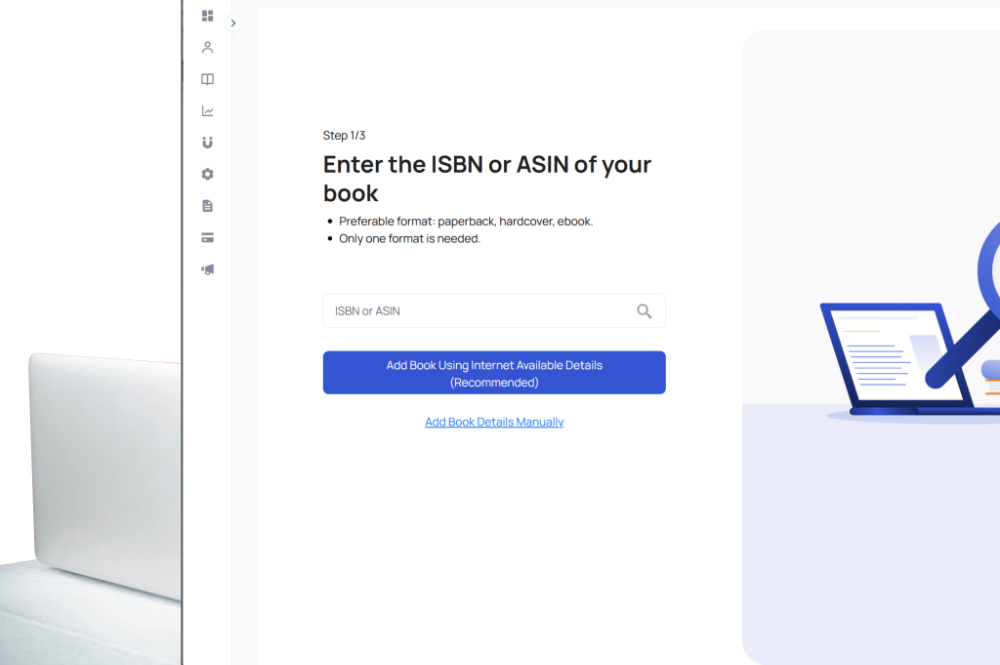 Upload your manuscript details and cover through DropCap Marketplace. No long forms or complicated setup required.