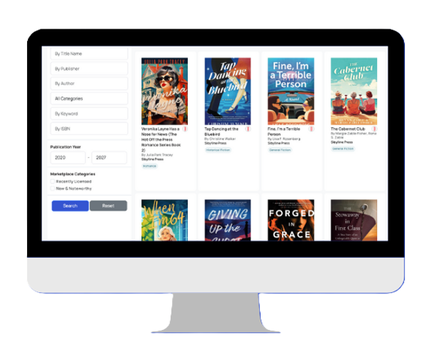 Listings are continuously discoverable via our advanced search, powered by RightsRank — an algorithm that ensures quality listings rise to the top. Books are browsable by region, genre, format, and more. Buyers can search without logging in or create an account to receive personalized pitches.
